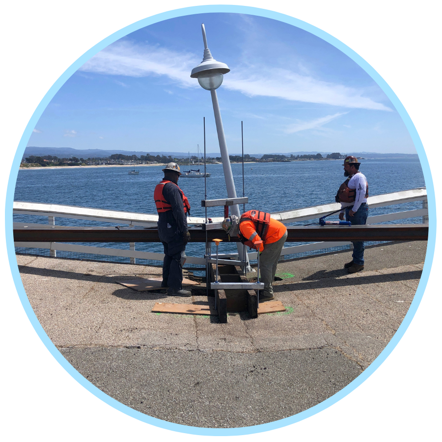 The City of Santa Cruz Parks and Recreation Department and Power Engineering Construction Company have begun repair work at the south end of the Santa Cruz Wharf. Substantial completion of the work is anticipated by March 2025.