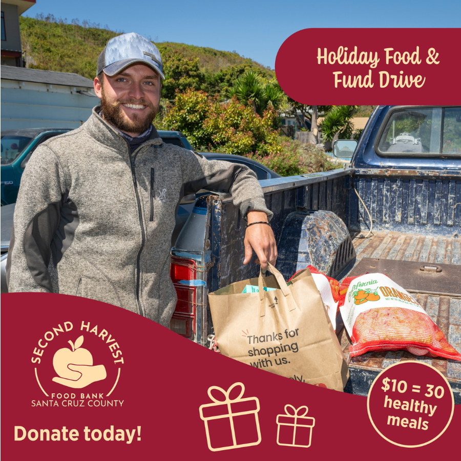 Help Santa Cruz County's Second Harvest Food Bank continue to fill the gap and feed hope! Your gifts of food and funds will provide healthy food to those facing food insecurity. 100% of the funds raised during the annual Holiday Food and Fund Drive buy food for distribution in Santa Cruz County. Through our purchasing power, Second Harvest Food Bank can provide THIRTY healthy meals for every $10 donated. | |