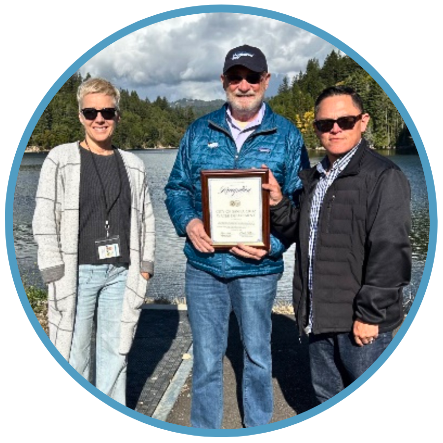 Water Department staff recently took Senator John Laird to Newell Creek Dam to tour the completed Inlet Outlet Replacement Project. At the site, the department received a certificate of recognition from the state for the project and its continued commitment to safely providing reliable water to the people of Santa Cruz.