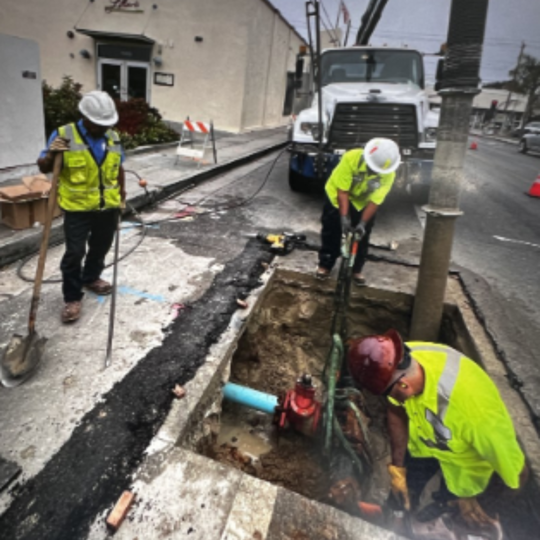 Water staff recently performed work on the 1600 block of Seabright Avenue to replace a broken 4” fire service valve serving Lilian’s and the U.S. Postal Service buildings. The team efficiently sectioned in a new 6” tee and 4” valve, completing the repair quickly and minimizing water interruption to nearby businesses. Great work, team!