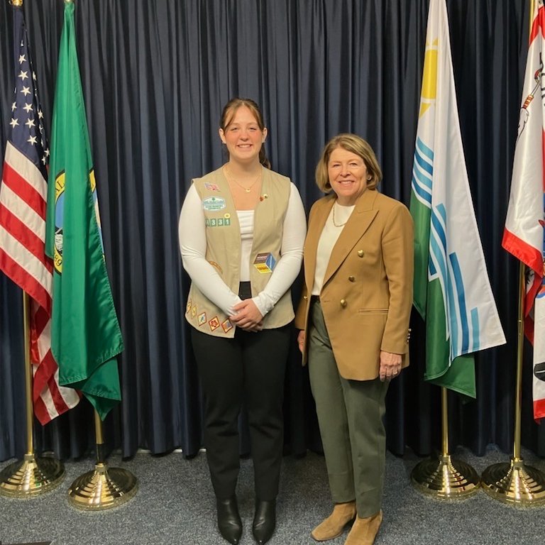 I had a wonderful visit with Gold Girl Scout Julia! As part of her Gold Award project, she helped pass a bill promoting the use of pollinator-friendly shrubs and bushes in landscaping. The bill was signed by Governor Jay Inslee in March 2024, and Julia was named Washingtonian of the Day!