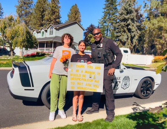 Reserve Officer Ed Richardson was asked by Shadle Park High School student Colton to provide a special Despicable Me Homecoming invitation to his friend Emma. The young man wanted to do something different and came up with the idea of Officer Richardson picking him up in a police car. The mission was a success!