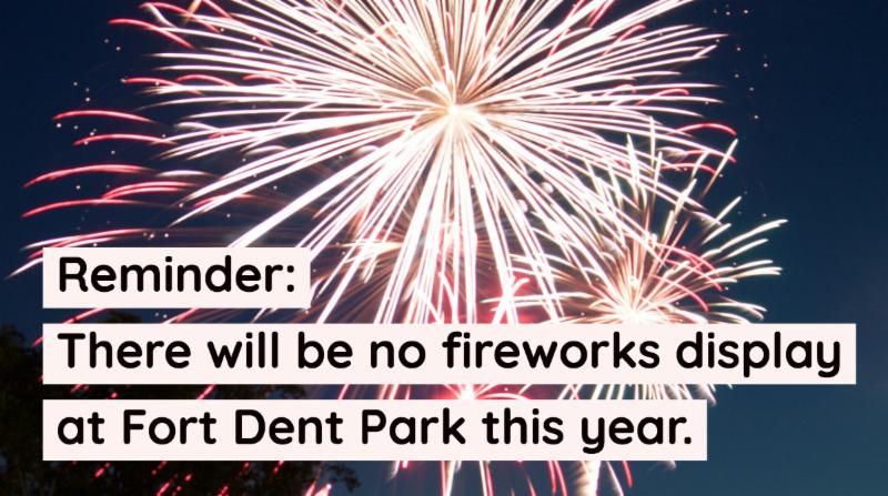 There will be no fireworks display at Fort Dent Park this year. If you're looking for a new place to view fireworks, please check out this website.