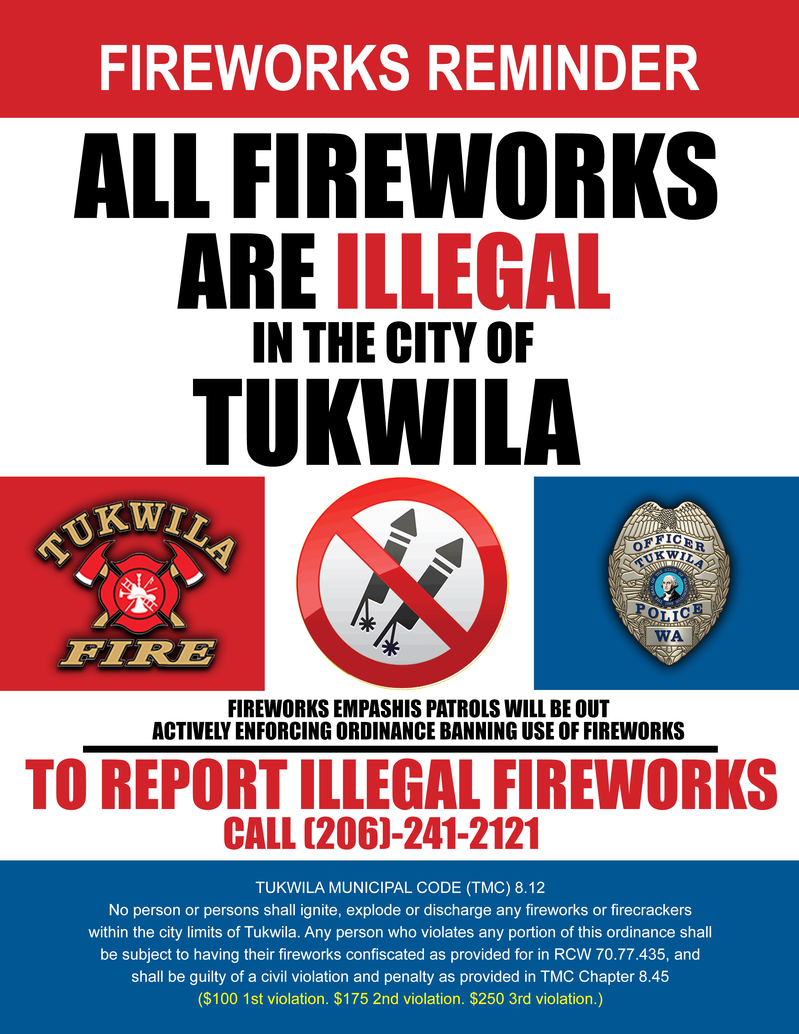 Don't Forget, Fireworks are illegal in the City of Tukwila