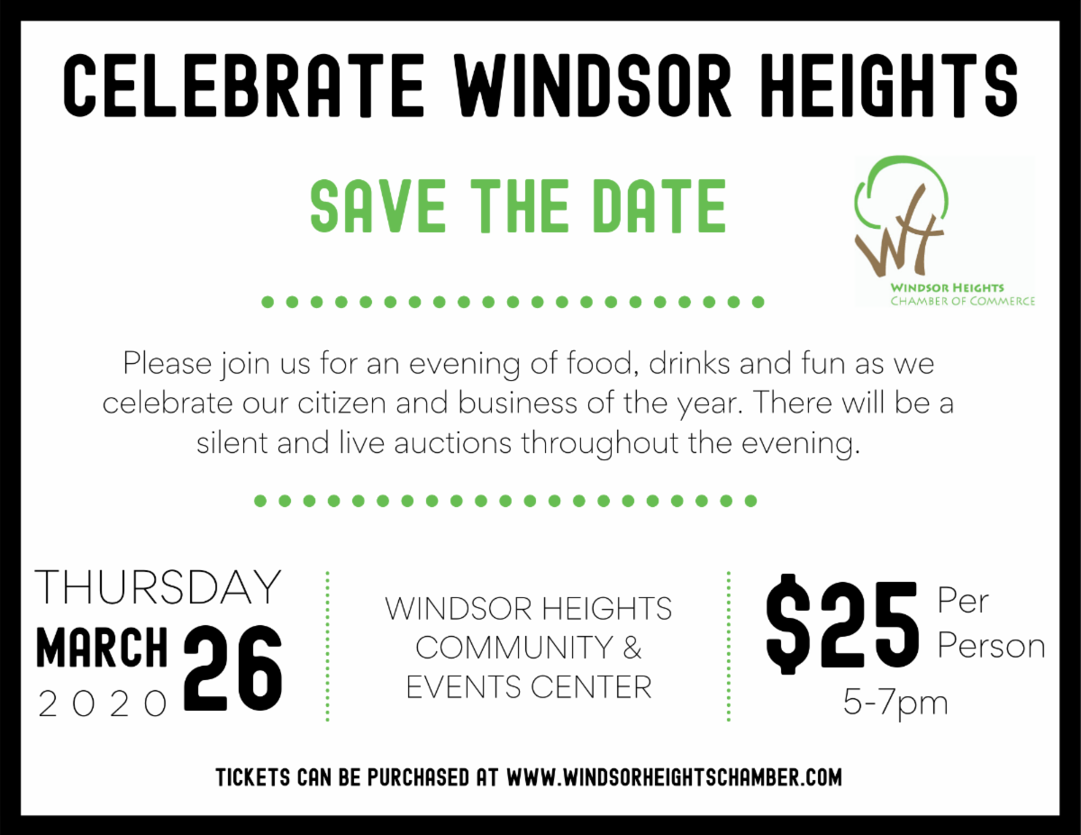- March 26 — Celebrate Windsor Heights, Community Center at 5 pm