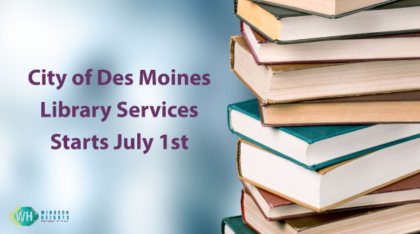 Windsor Heights residents may begin using the City of Des Moines Public Libraries on July 1, 2020. This includes full access to their digital library. Until then, the City of Urbandale is the designated library for Windsor Heights residents.