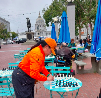 The plazas were activated throughout the summer with a host of different activities. Chess players battled it out for the top spot with a Mechanics' Institute and Civic Center CBD-led chess tournament in UN Plaza, where players also had the chance to participate in simul with Chess Grandmaster Sam Shankland (image left). Also the All the Way Live Hip Hop Festival and Competition brought together hip hop dancers of all age for demos and dance battles.