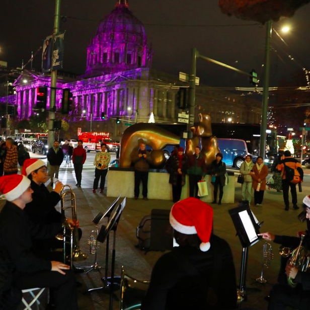 Our annual Civic Center Plaza Holiday Tree Lighting brought festive merriment to Civic Center Plaza on December 3. The night featured live music and performances, a toy and book giveaway for over 600 children, holiday crafting, and "snow" flurries to the delight of children and the young-at-heart. Special thanks to Another Planet Entertainment, Cordia Energy, Redwood Credit Union, San Francisco Police Department, San Francisco Public Library, San Francisco Recreation & Parks Department, and StreetPlus for their support. Interested in sponsoring or participating in next year's event? Please contact us. You can see more images from the event in this online photo album.