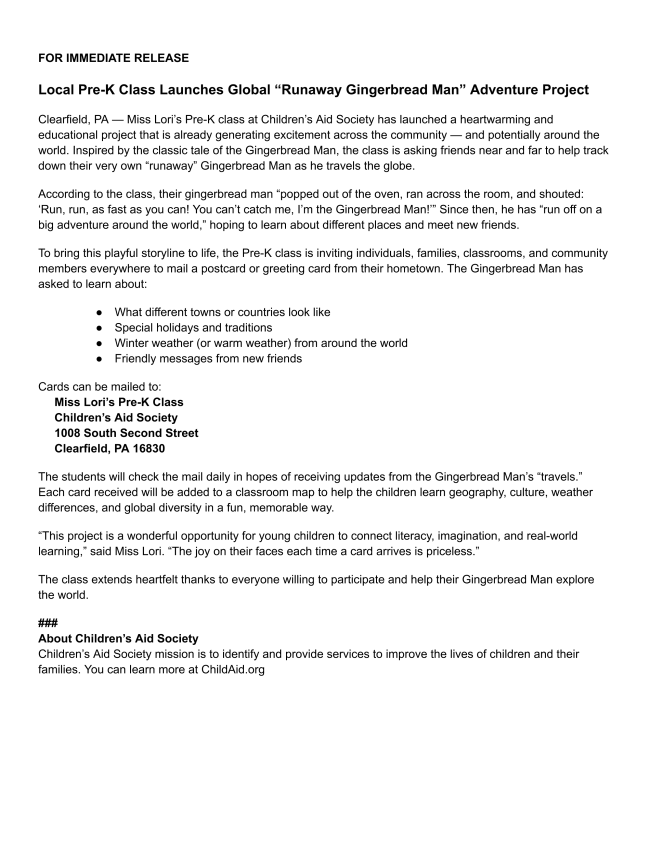During intermission, guests may enjoy popcorn, candy, and other refreshments for a donation to the CAST Scholarship Fund. Audience members will also have the opportunity to purchase raffle tickets for a chance to win a festive gift basket, with proceeds benefiting both the CAST Scholarship Fund and the Children’s Aid Society.