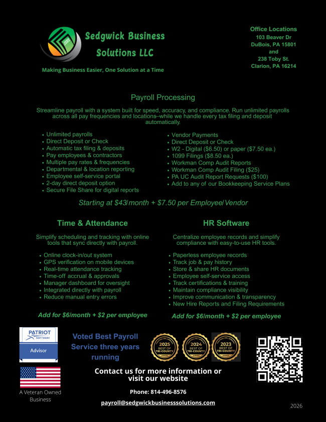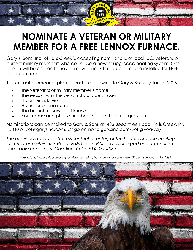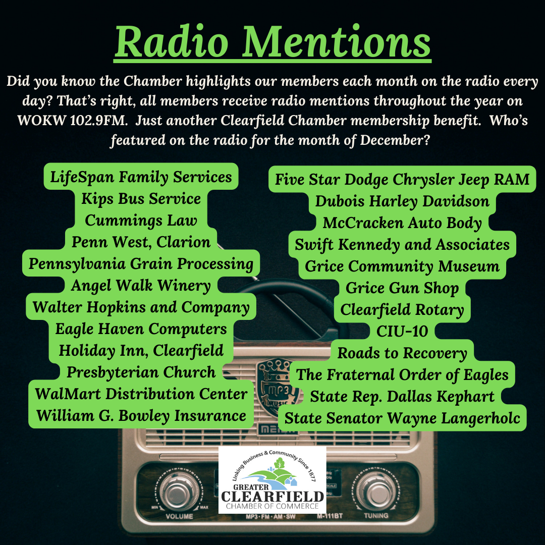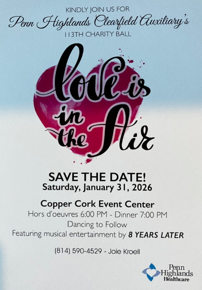 The production is directed by Lew Duttry and Julie Tobias and is generously sponsored by CNB Bank, Denny’s Beer Barrel Pub, and Penn Highlands Healthcare.