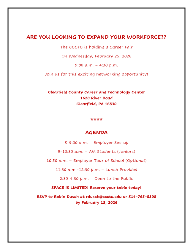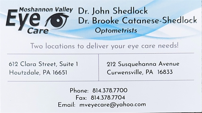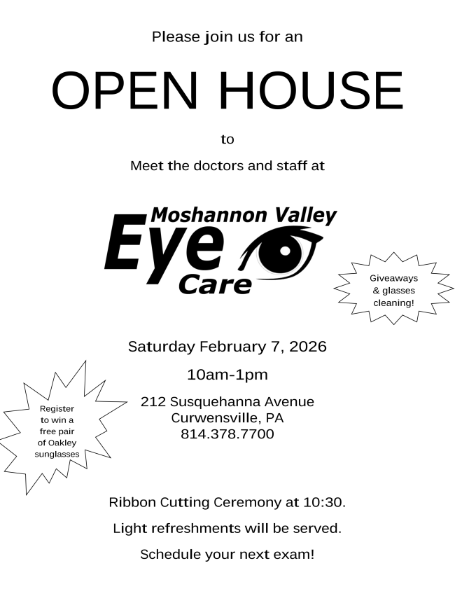 Please join us for a Clearfield Chamber of Commerce Ribbon Cutting on Saturday February 7th as we welcome Moshannon Valley Eye Care to Curwensville as their second location!
