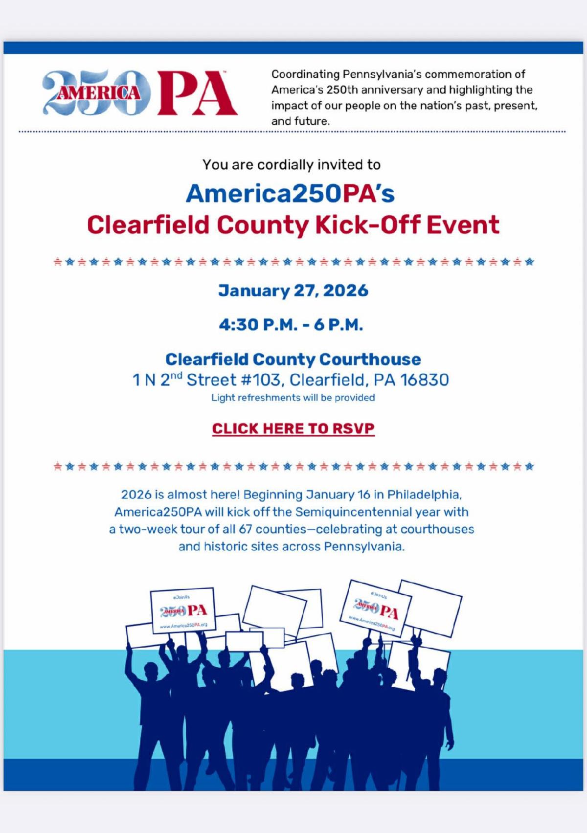 This production is sponsored in part by Visit Clearfield County, CNB Bank, and Clearfield Eagles.
