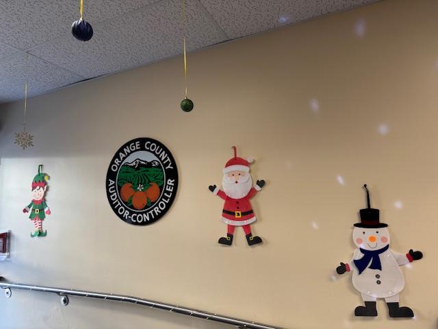 | | OCWR Holiday Decorating Contest | | OC Waste & Recycling (OCWR) hosted their first annual Holiday Decorating Contest, which included OCWR A-C! Our unit won Winter Wonderland – Most Sustainable Design! | | Annual Exec/Admin Holiday Lunch | | Every year, Executive Management, Administrative Services, Internal Audit, Financial Services, and Human Resources go out for our annual holiday lunch. This year, we went to Mrs. Knott's Chicken Dinner Restaurant at Knott's Berry Farm! | | Each year at the A-C Headquarters Building Dane Corsaut (Administrative Services) decks out the lobby with holiday decorations! | | Our A-C Headquarters Building organized a Thanksgiving Food Drive for the OC Rescue Mission. We delivered over 250 pounds of perishable and non-perishable items, directly contributing to meals and support for individuals and families in need this holiday season. We also donated four frozen turkeys bringing the total to nearly 350 pounds of food. Grateful for our office's heart for service and working alongside people who consistently show up for our community. | | On November 7th, our office hosted our annual Senior Managers Meeting to highlight the many initiatives our staff are leading and to share the great accounting services our Office provides to the County. It's always a special time to come together, learn from one another, and reflect on our collective hard work. A big thank you to the Orange County Fire Authority for being such wonderful hosts! | | On October 16th, the ERP team and Cynthia Kaui (PIO) attended the OCIT Open House. The ERP team had a booth and presentation to showcase the progress on the ERP implementation project. | | Every year, Executive Management visits our seven satellite locations to see our staff who handle all the accounting services for the different government agencies (CEO Finance Accounting, Health Care Agency Accounting, John Wayne Airport Accounting, OC Community Resources Accounting, OC Public Works Accounting, OC Waste & Recycling Accounting, Social Services Agency Accounting). It is always great seeing and hearing from all of our employees during these visits, including seeing some of them in action assisting the public through the services they provide. | | On October 7th, Executive Management and the ERP team received an update from the ERP Steering Committee and engaged in a team bonding exercise over breakfast. | | CalSACA Annual Conference | | From October 21st-October 23rd, Executive Management attended the 80th Annual County Auditors Conference in Lake Arrowhead. | | What's Going on Outside the A-C Office | | Cynthia Kaui (PIO) gained public sector communication skills and represented our office at the California Public Information Officials (CAPIO) Leadership Summit in Newport Beach. | | | | |