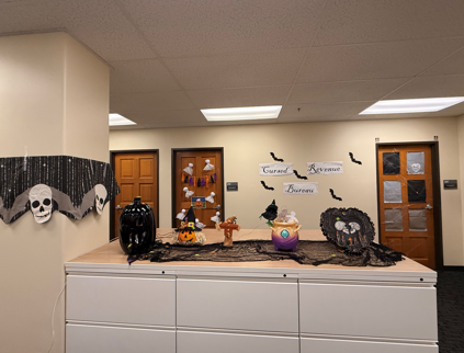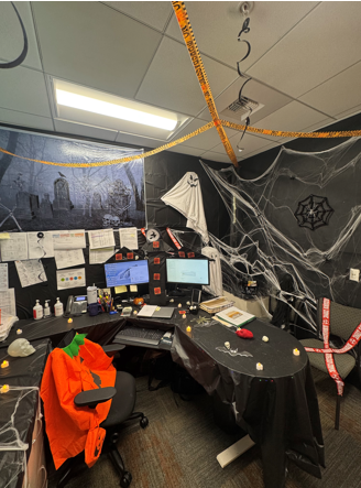 On October 30th, we had our annual Salloween costume contest, and this year we brought back our unit decorating contest. Each year at the A-C Headquarters Building Dane Corsaut (Administrative Services) decorates the lobby with incredible detail and Halloween spirit. Because of his contribution to the true spirit of Salloween, the Unit Decorating Contest is now being named after Dane. The Admin unit received a special lunch, contest winners won a pizza party, and the runner-ups won an ice cream party. The winner of the Inaugural Dane Corsaut Unit Decorating Contest: