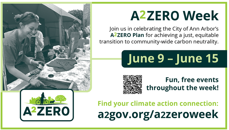 Sunday, June 9, 1:00-4:00 p.m. Green Energy Neighbors Net Zero Home Tour. Ever wondered about decarbonizing your home? Here is your chance to tour a net zero home and learn about the owner’s 12-year journey to full decarbonization. Meet A2ZERO Ambassadors, bring your questions, and plan to capture lots of great information and resources! Registration required. Free.