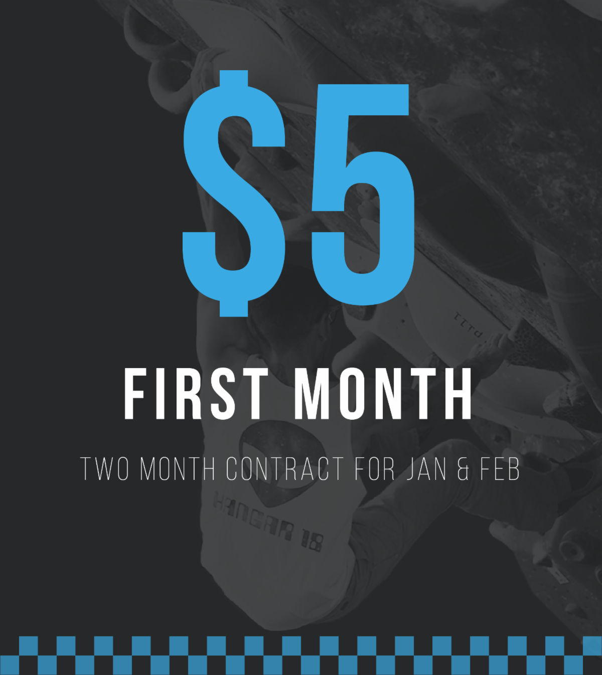 Our discounted first-month membership deal is better than ever! We're offering 90% off your first month of membership! This deal is a great way to get into climbing and lock in your monthly rate at the discounted price of $44/month for the membership duration.