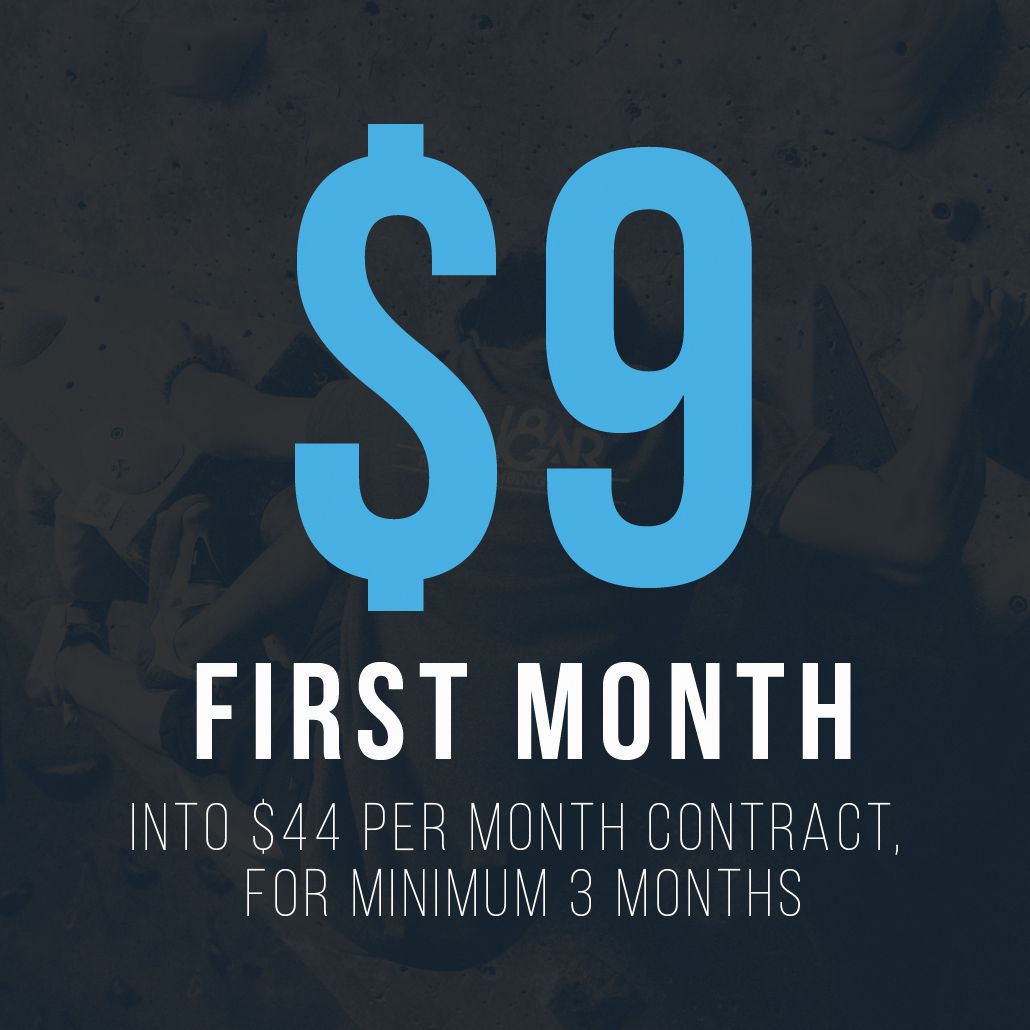 We're offering 80% off your first month of membership! This deal is a great way to jump back into climbing while locking in your monthly rate at the discounted price of $44/month for the membership duration.