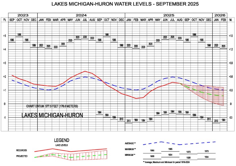 | | September 2025 Water Level Update | | Lake Michigan water levels began their seasonal decline in August. Lake Michigan is now about 8 inches below the long-term average water level for the month. Water levels are expected to continue their decline through at least February 2026. | | Center for Water Policy Publishes Report on Setback Regulations | | The UW-Milwaukee’s Center for Water Policy has published a report on setback regulations in the Great Lakes. Setbacks are laws dictating how far a structure should be built from a lake and adjacent landforms, such as bluffs or dunes. Their purpose is to protect homes and other structures located along the coasts of the Great Lakes from the dangers of fluctuating water levels, floods, waves, and erosion. This report and table compare the setback regulations of the the eight Great Lakes states. This research highlights the risks of placing structures close to the Great Lakes and asks readers to consider the effectiveness of their state or local Great Lakes shoreland zoning laws and the necessity of updates to setbacks laws throughout the Great Lakes region. | | 2025 Oblique Photos Added to Shoreline Viewer | | | | The Wisconsin Shoreline Inventory and Oblique Photo Viewer is a web-based, interactive map of Wisconsin coastal data that enables users to visualize the temporal changes to Wisconsin’s shorelines. The viewer contains bluff recession data, shoreline condition inventories, and geolocated aerial photos. Users can view images from different years, side-by-side to visualize coastal change. | | 2025 Great Lakes Chronicle Now Available | | In recognition of Coastal Awareness Month, the Wisconsin Coastal Management Program is proud to announce the release of the 2025 Wisconsin Great Lakes Chronicle. The Chronicle promotes public awareness of Wisconsin Great Lakes issues, provides a vehicle for experts to educate public policy leaders, and creates an historical record of Great Lakes events and perspectives. | | | Fish & Wildlife Service Coastal Program FY25 | | |