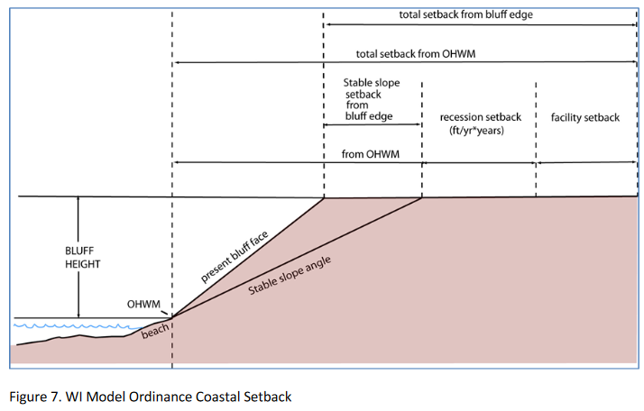 Since 1968, Wisconsin local governments have had the responsibility of adopting, administering, and enforcing minimum shoreland management regulations. In Wisconsin, the Shoreland Management Act establishes a shoreland zone. The purpose of this zone is to minimize the potential impacts of land development on the area’s surface water and groundwater features. Building and structure setbacks are established to conform to health, safety, and welfare requirements; preserve natural beauty; reduce flood hazards; and avoid water pollution.