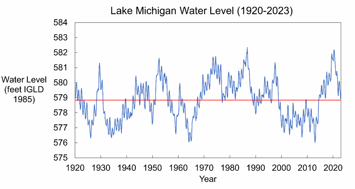Go to the full update to learn more about what El Niño, Great Lakes ice trends, evaporation, and net basin supply mean for current and future Lake Michigan water levels.