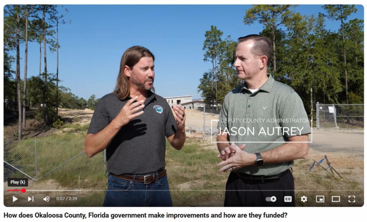 We take the responsibility of providing essential government services seriously in Okaloosa County. Over time and as the County has grown, the need for improvements has become necessary. Fortunately, we are able to complete a substantial portion of these improvements without using your property tax dollars. To help avoid confusion on how your local government makes these improvement and their funding sources, we spoke with Deputy County Administrator Jason Autrey on three of these non-property tax funding sources. View the video interview at https://youtu.be/j5pw02mKVow?si=mSoJgf82bo76MgIx