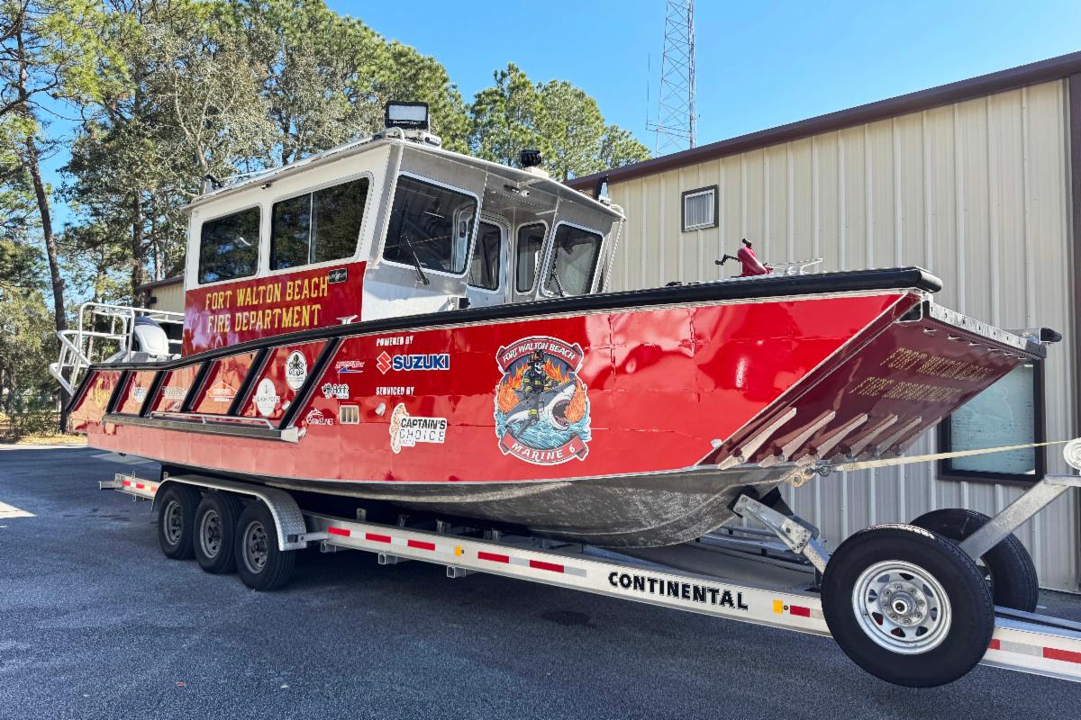 The $491,000 fire/rescue boat was purchased using a Department of Homeland Security grant, along with revenue from the Okaloosa County half-cent infrastructure surtax. The federal grant covers 75 percent of the approximately $491,000 cost of the boat, with the half-cent surtax funds covering the remaining 25 percent.