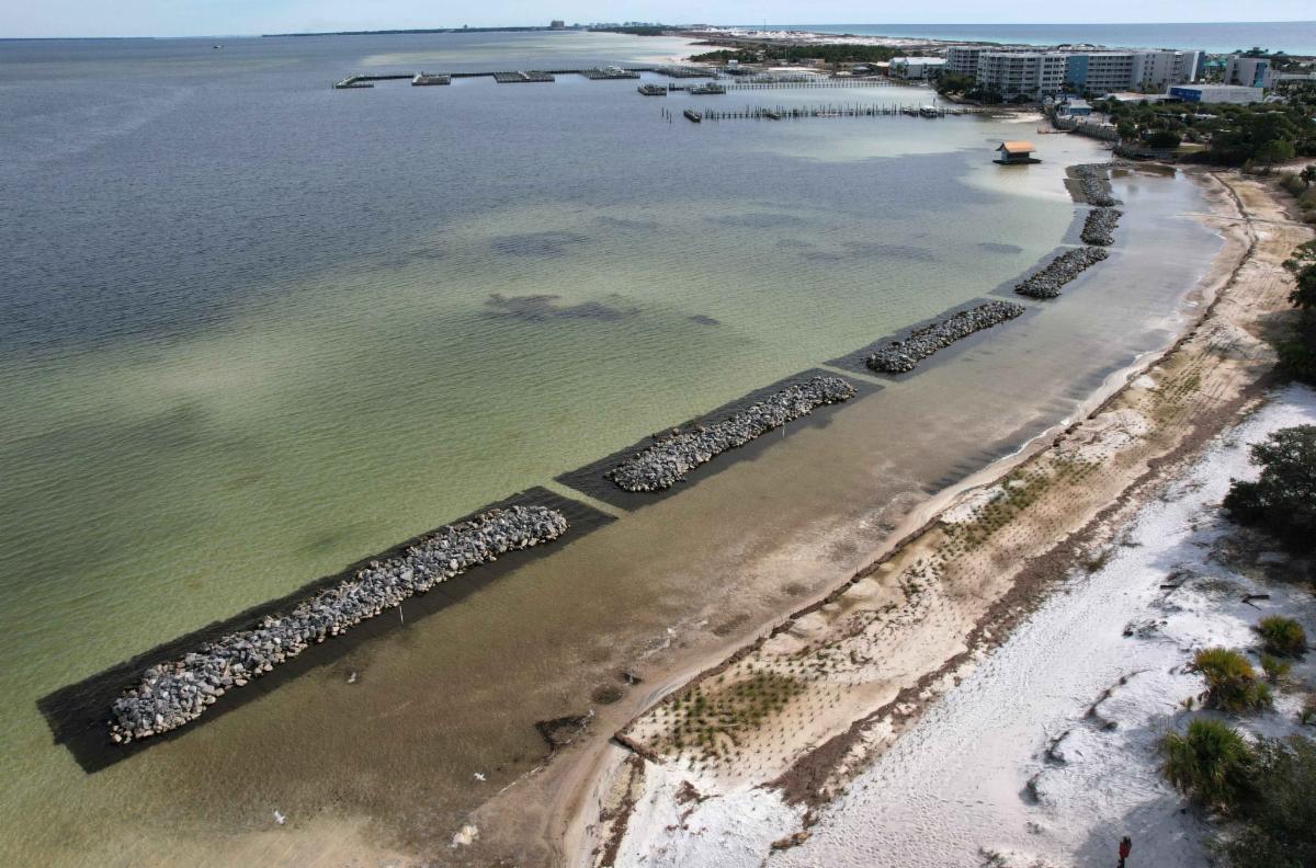 Okaloosa County recently completed 2,000 feet of living shoreline constructed in the Choctawhatchee Bay. This multi-year effort utilized a cost-effective, nature-based solution to mitigate erosion and enhance the ecosystem surrounding nearby Veterans Park and Marler Park. The installation of this living shoreline is much more cost-effective than traditional shoreline barriers and coincides with the proper intention of these parks for visitors while recognizing the importance of the natural surroundings. The project funding consists of $1.5 million in tourism bed tax revenue, a $1.5 million grant from the National Fish and Wildlife Foundation and $1.6 million from the RESTORE Council through the Gulf Consortium.