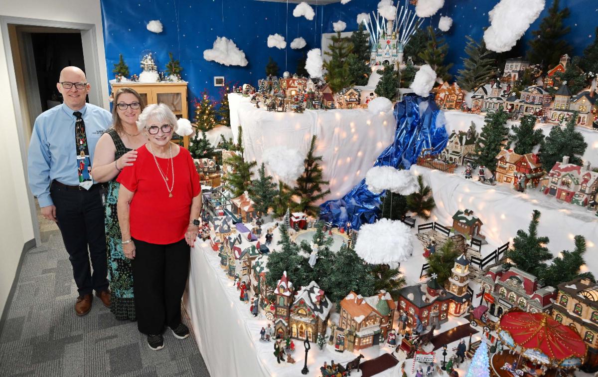 In a vacant office located off the Growth Management Department lobby, Tim, his wife, Melissa, his daughter, Mikayle, and his mother-in-law, Charlotte Shelton, have created an elaborate Christmas village, with hundreds of buildings and figurines, a castle, and a functioning railroad train.
