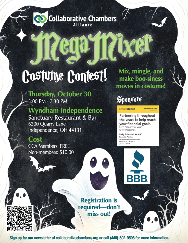 Mix, mingle, and make boo-siness moves in costume! Sponsored by Collaborative Chambers Alliance & BBB Serving Greater Cleveland.