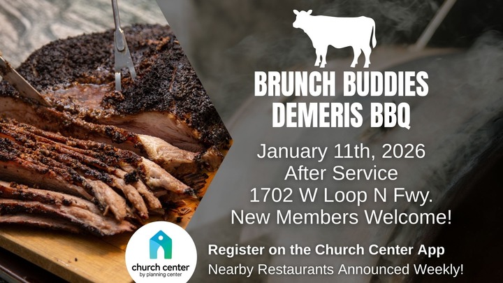 Join us for in-person Brunch Buddies on Sunday, January 11th, after service at Jax Grill, 1702 W Loop N Fwy. View MENU.