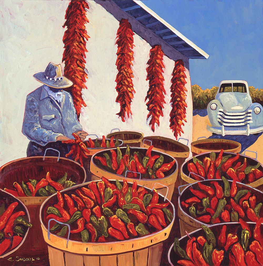 I paint chile too, but I usually capture fields and ristras of red chile simply because red is my favorite color. It stands out and adds a pop of brightness to our NM landscapes.