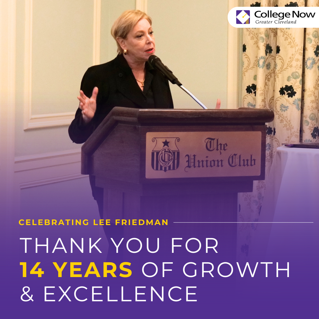 After 14 years of transformative leadership, Lee Friedman participated in her final board meeting as CEO of College Now Greater Cleveland on December 10. Under her guidance, College Now grew from a $5 million budget to nearly $38 million, expanding its reach to serve over 38,000 individuals annually across 5 counties. Lee also spearheaded the effort to bring Say Yes to Education to Cleveland, securing an incredible $100 million in college scholarships for Cleveland Metropolitan School District students.