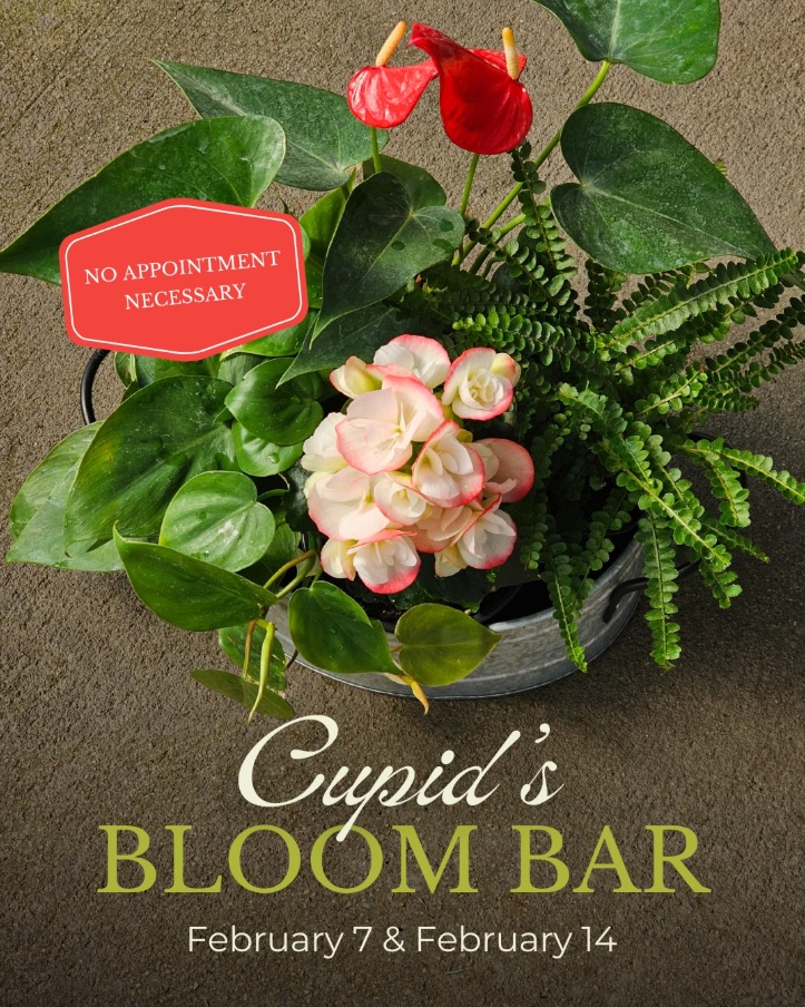 Stop by anytime Saturday, February 7th or 14th to make a romantic floral arrangement with our in-house experts. We'll guide you through choosing the perfect flowers and houseplants to declare your love!