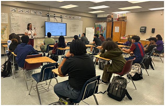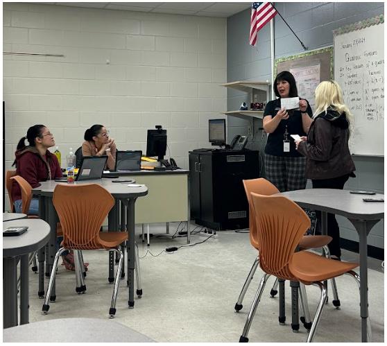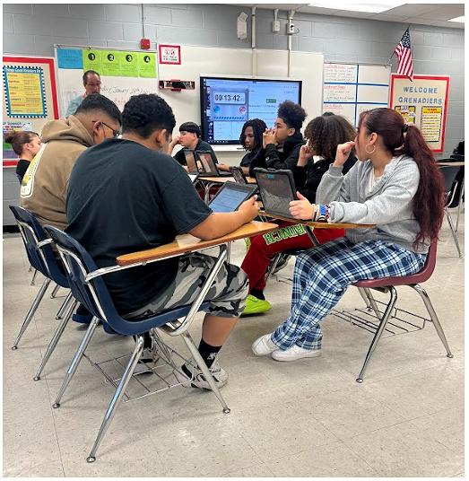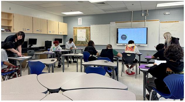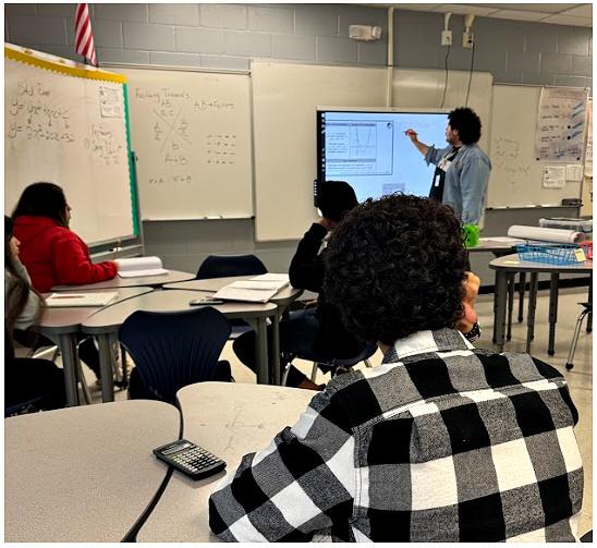 A big THANK YOU to Mrs. Cancel from Curriculum and Design who has been working closely with our Algebra 1 team to strengthen student performance. She is pictured above with our Algebra 1 PLC (Professional Learning Community) to develop new processing strategies and then below in Mrs. Will’s classroom working with students.