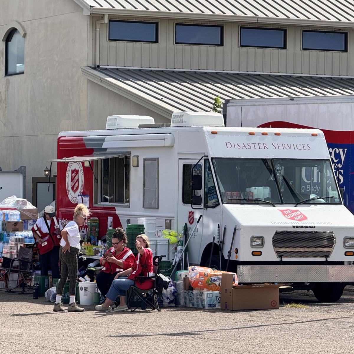 Below: Photos from the Kerrville staging area for first responders, chaplains, and others serving the community.