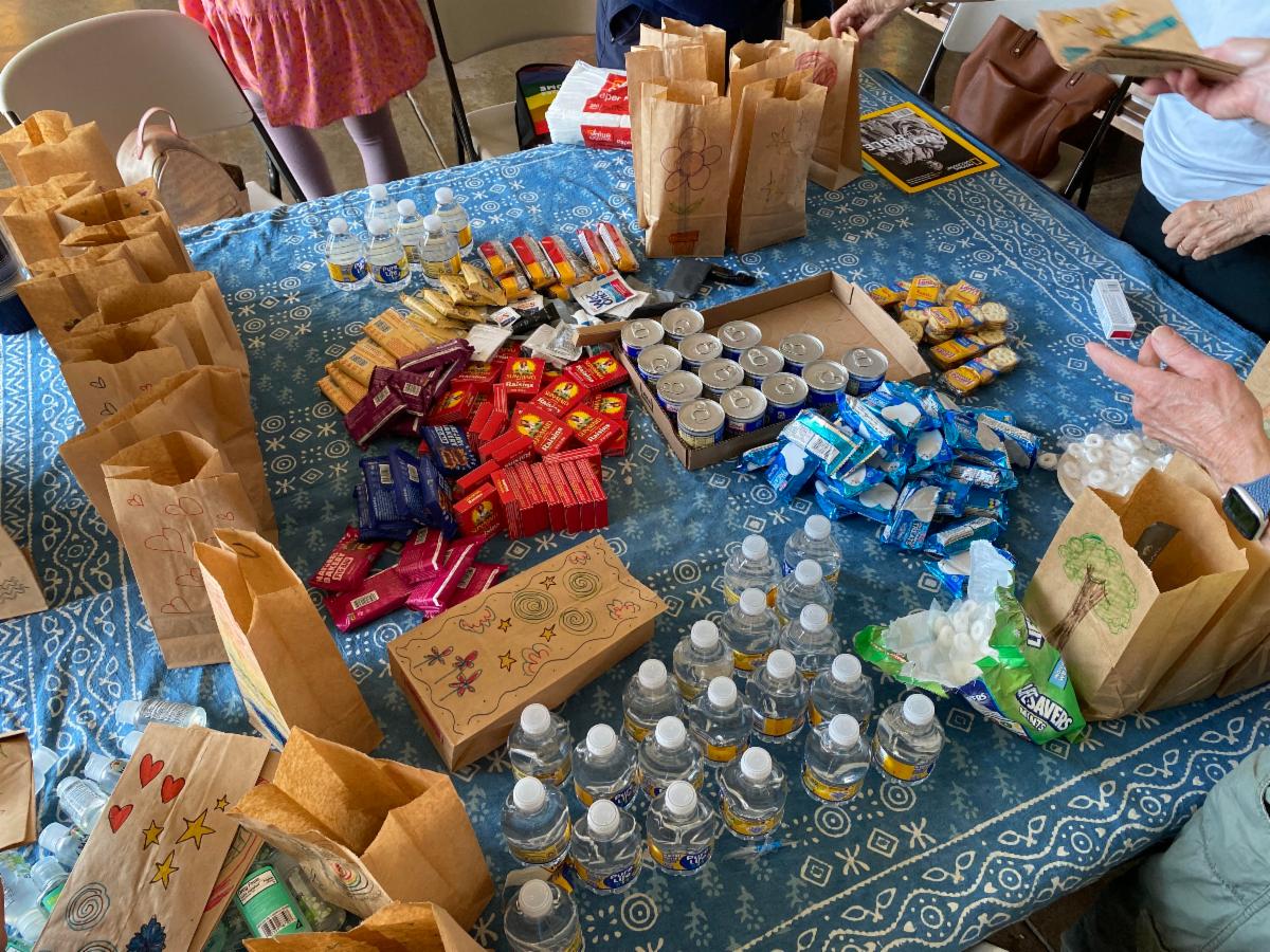 those in need – granola bars, water, canned sausage, crackers, raisins,