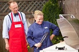 Grilled steak with New Mexican chile rub; raspberry sorbet. Also: a hot sauce taste-off; the science behind sorbet; ice cream machines and cone makers.