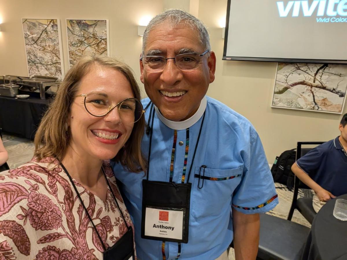 I had the opportunity to attend the first full day of the conference, June 18, due to the generosity of the Diocese of Louisiana and my local parish, St. Margaret’s in Baton Rouge. I was grateful for the opportunity to represent our diocese and to celebrate the ministry and work of the Rev. Dr. Anthony Guillén, who was the keynote speaker at a banquet and fiesta on June 18. Padre Anthony recently retired from his position as the Missioner for Latino/Hispanic Ministries of the Episcopal Church. We hold him especially dear in Louisiana, as multiple members from our parishes have attended the Episcopal Latino Ministry Competency Course (ELMC) in the past several years. Padre Anthony developed this training and led it for many years, and it was instrumental in the initiation of Latino and Hispanic Ministry in our diocese. Now, with Padre Anthony’s retirement, Karla Sikaffy duPlantier, the Diocesan Coordinator for Latino/Hispanic Ministries in Louisiana, is stepping into a leadership and facilitation role with ELMC.