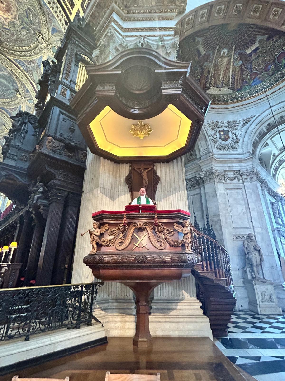 On Sunday, June 22, Dean duPlantier preached to a congregation of nearly 3,000. The liturgy featured the Cathedral’s renowned choir and the City of London Sinfonia performing Mozart’s Missa brevis in C as part of a summer series of Orchestral Masses. In his sermon, Dean duPlantier reflected on Jesus casting out demons in the land of the Gerasenes, drawing parallels to the Diocese of Louisiana’s decades-long ministry at Angola Prison, the largest maximum-security prison in the United States. He had visited inmates at Angola and preached there just a week prior; when he mentioned in his homily that he would be preaching at St. Paul’s, the inmates stood and offered prayers for safe travel and for the people of St. Paul’s who would hear his sermon. Being held in prayer by those often forgotten was a moving moment.