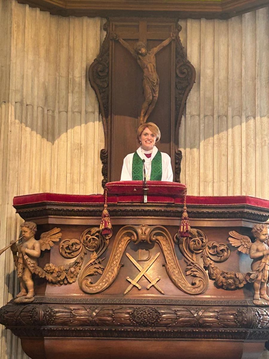 Three weeks later, on Sunday, July 13, Bishop Duckworth stepped onto the same historic pulpit. This was the final Orchestral Mass of the summer, featuring Haydn’s Nelson Mass performed by the City of London Sinfonia. Bishop Duckworth described the awe of entering a space filled with “the thousands upon thousands of prayers that have been offered” over centuries. She noted the challenge of preaching in such a vast cathedral, where the acoustics create a nine-second delay.