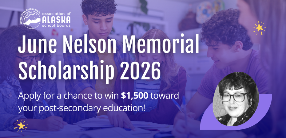 The Association of Alaska School Boards proudly presents the June Nelson Memorial Scholarship, honoring a true champion of Alaskan education. We’re offering up to 15 scholarships of $1,500 each for high school seniors and returning college sophomores pursuing their post-secondary education goals – college, trade or vocational school.
