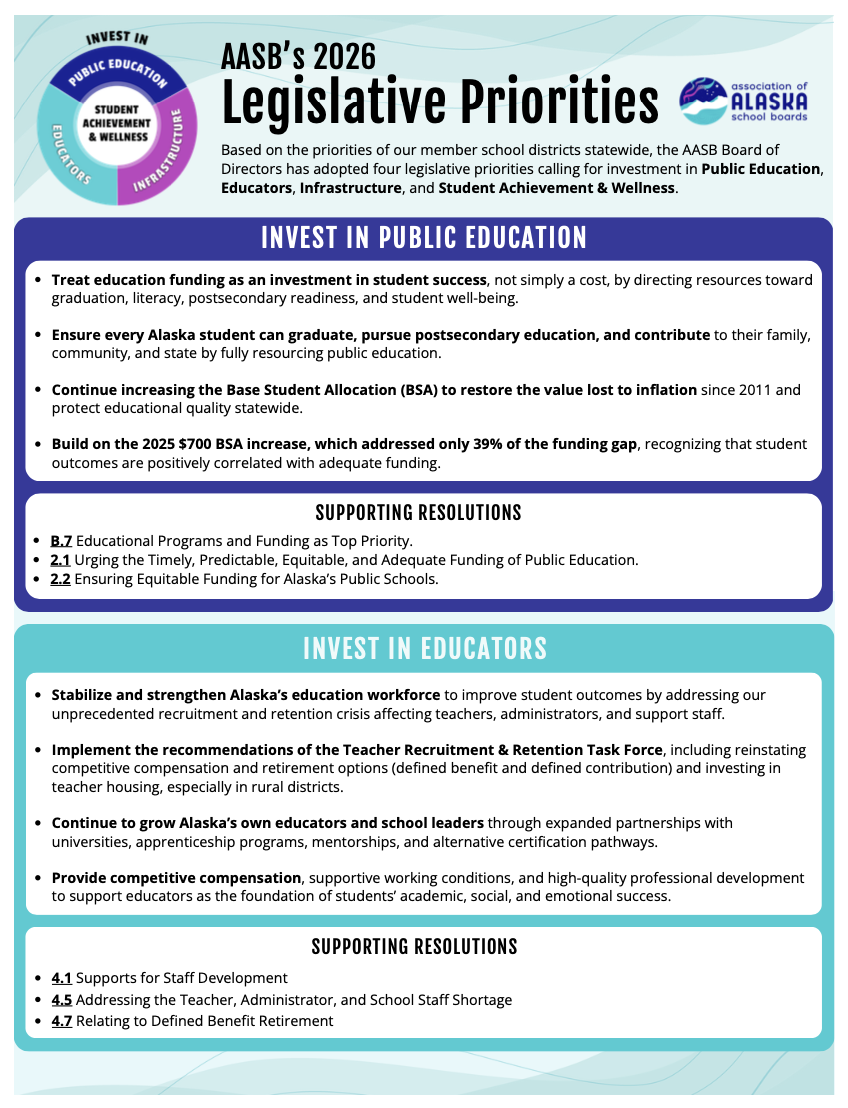 Investing in What Carries Alaska Public Education Forward: AASB’s 2026 Legislative Priorities