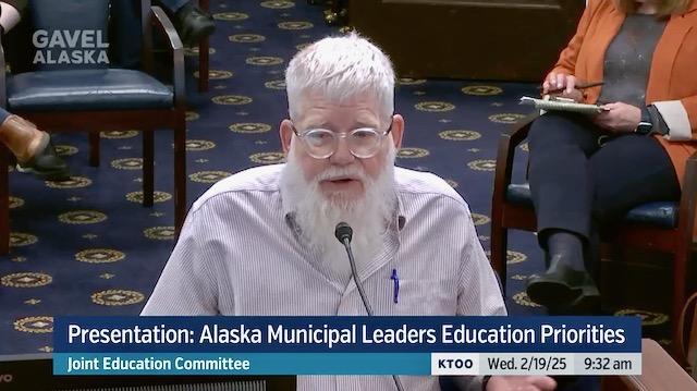 As part of his presentation to the Joint Education Committee, Alaska Municipal League Executive Director. Nils Andreassen called for an increase to the Base Student Allocation and school bond debt relief. | |