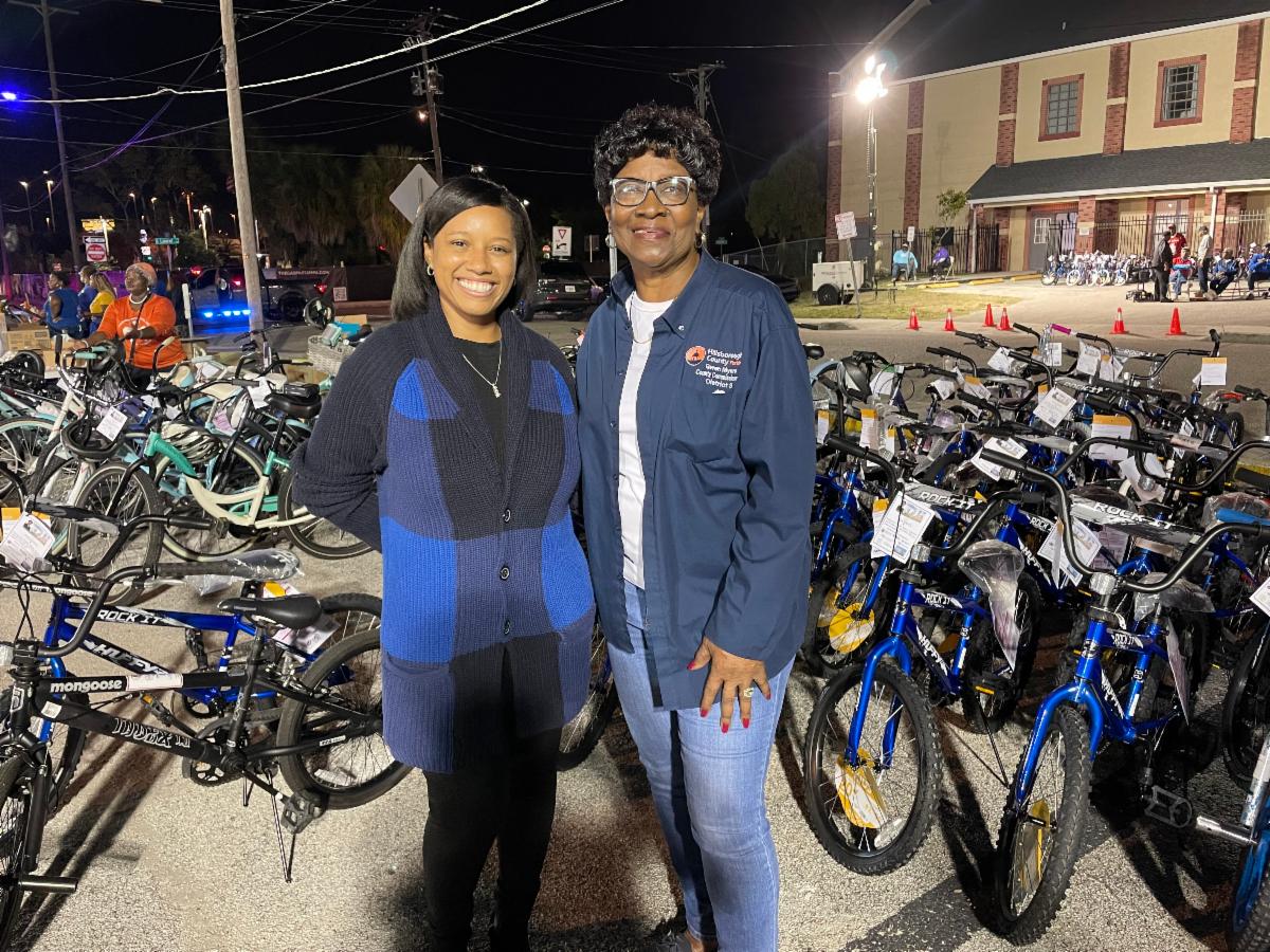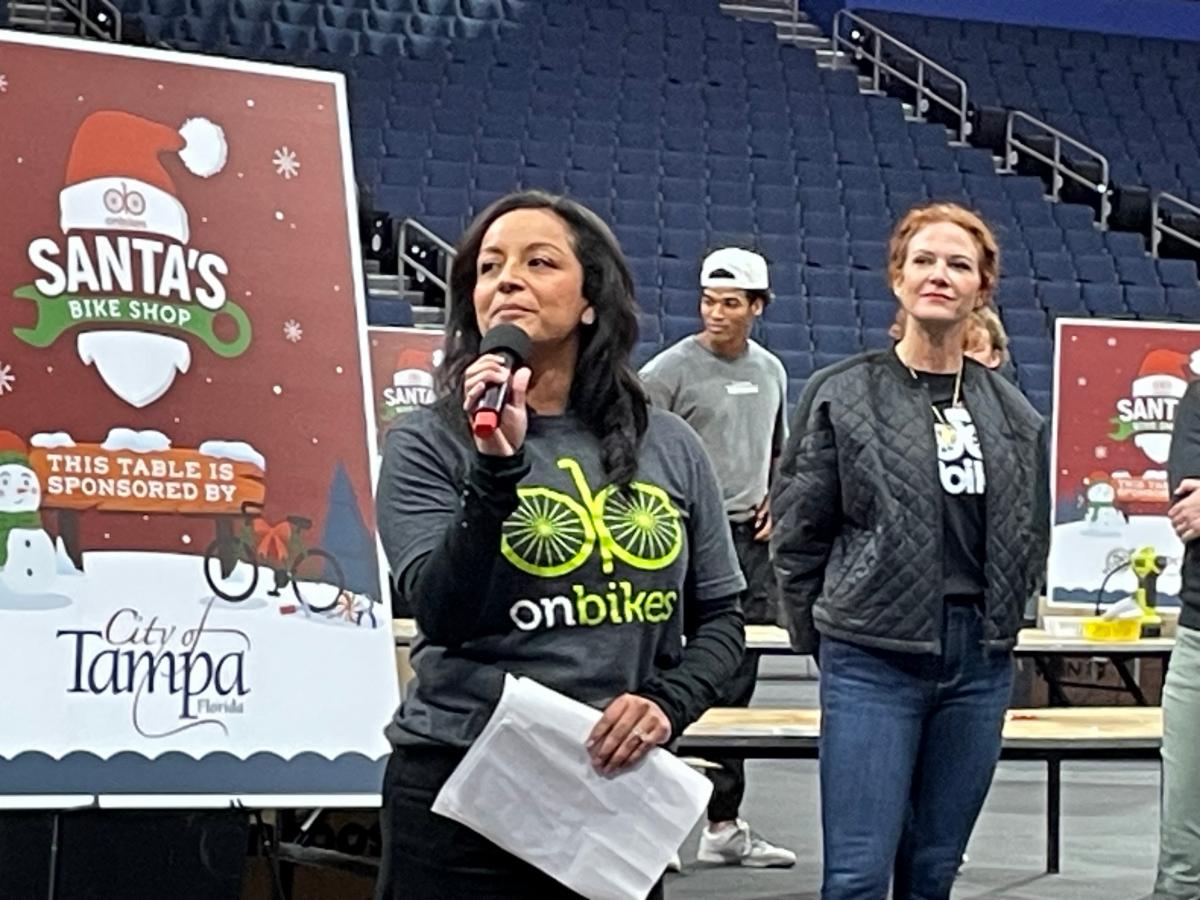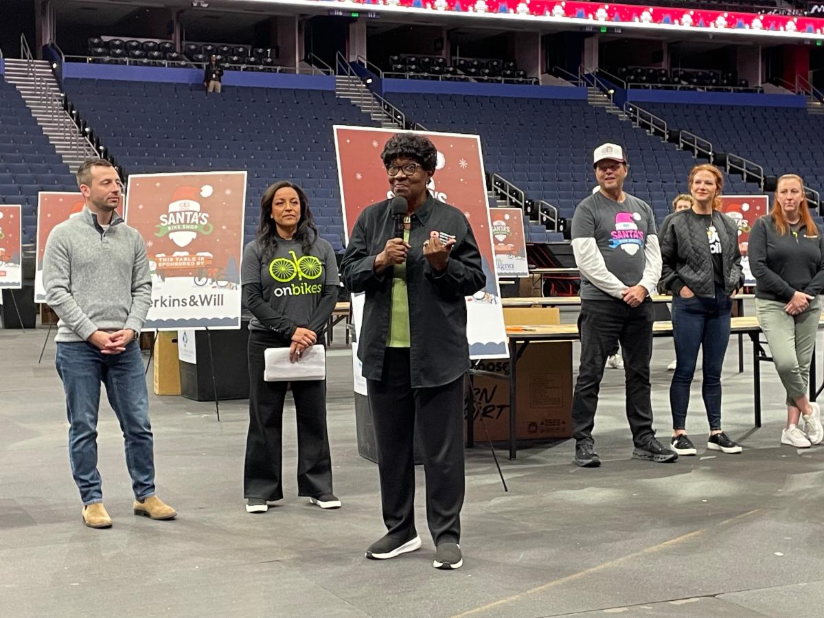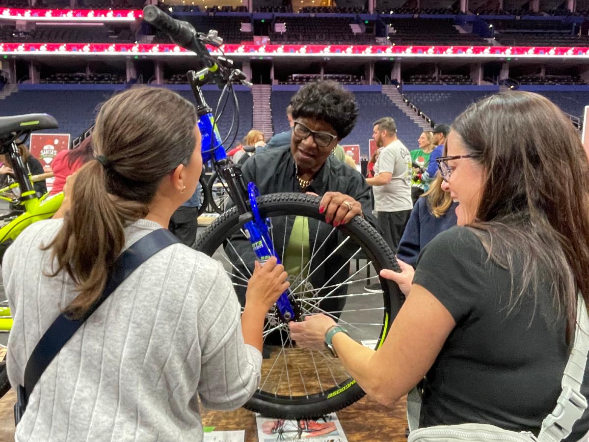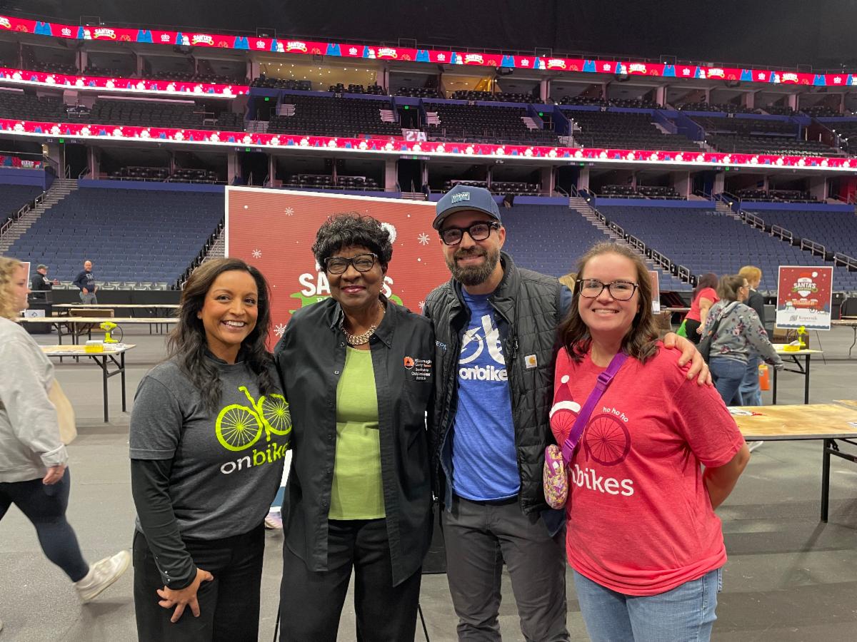 On Tuesday, December 9, 2025, my Aides, Wanda West and Robbi Smith joined me at Benchmark International Arena. We were invited to volunteer with the onbikes team for their annual Santa's Bike Shop event. This heartwarming initiative brings joy to children in our community by providing them with bicycles and helmets, ensuring that every child can experience the thrill of riding.