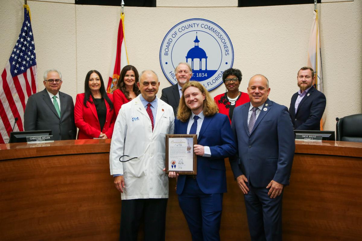 | | Most County offices and facilities will be closed for Christmas and New Year's Day. For the most updated information, please visit the links below. | | Dr. Charles Sand, Andrew Emerton, and Commissioner Boles | | On behalf of the Board, Commissioner Boles presented a commendation recognizing Andrew Emerton. | | Commissioner Miller and Sun City Emergency Squad | | On behalf of the Board, Commissioner Miller presented a commendation recognizing The Sun City Center Emergency Squad. | | |