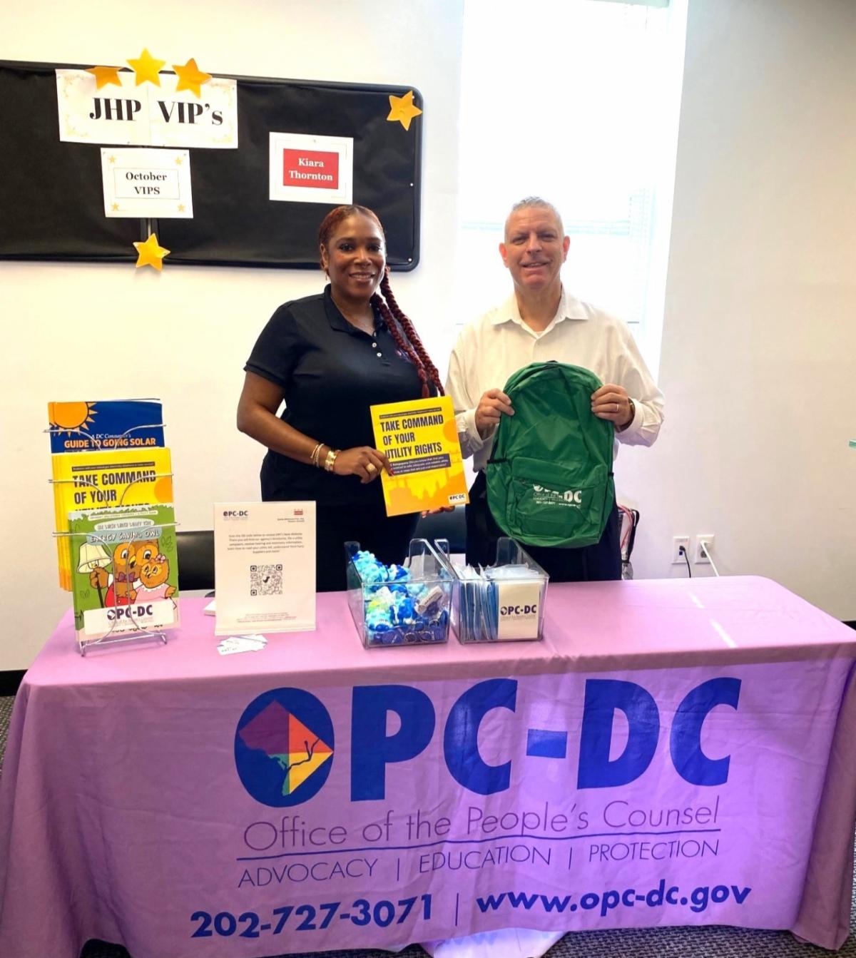 OPC's CharQuia Barringtine and Geoffrey D. Brooks with Jobs Have Priority at the organization's resource fair in Ward 8. | |