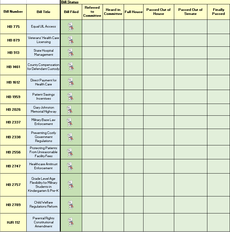 While the announcement of committee assignments was the biggest event in the House this week, I have also been busy filing and developing more bills. With Sheppard Air Force Base in HD-69, I have the privilege of serving a strong community of military families and veterans. This week, I want to highlight several bills I’m working on to support them. Below I have written explanations of each bill.