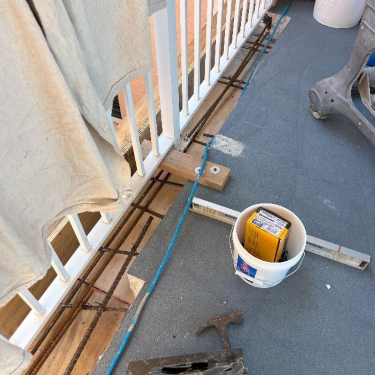 Balconies and elevated walkways are constantly exposed to rain, salt spray, and temperature changes. Over time, waterproofing systems fail, allowing moisture to penetrate the slab.
