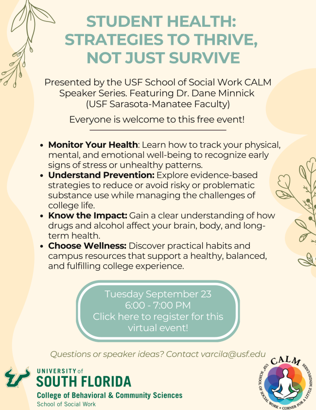 An online event presented by the USF School of Social Work CALM Speaker Series and featuring Dane Minnick, PhD. All are welcome!