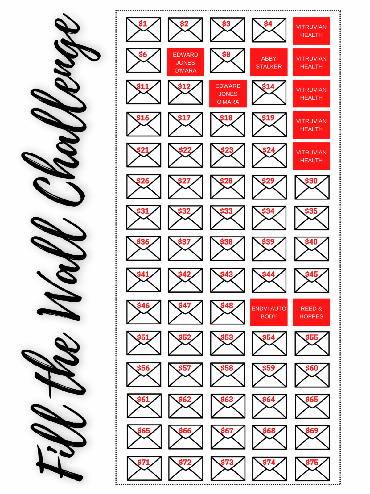 Simply choose an available envelope, labeled $1, $2, $3.... up to $75 to donate online. We will also bring the envelope wall to ALL Chamber events until the wall is filled.
